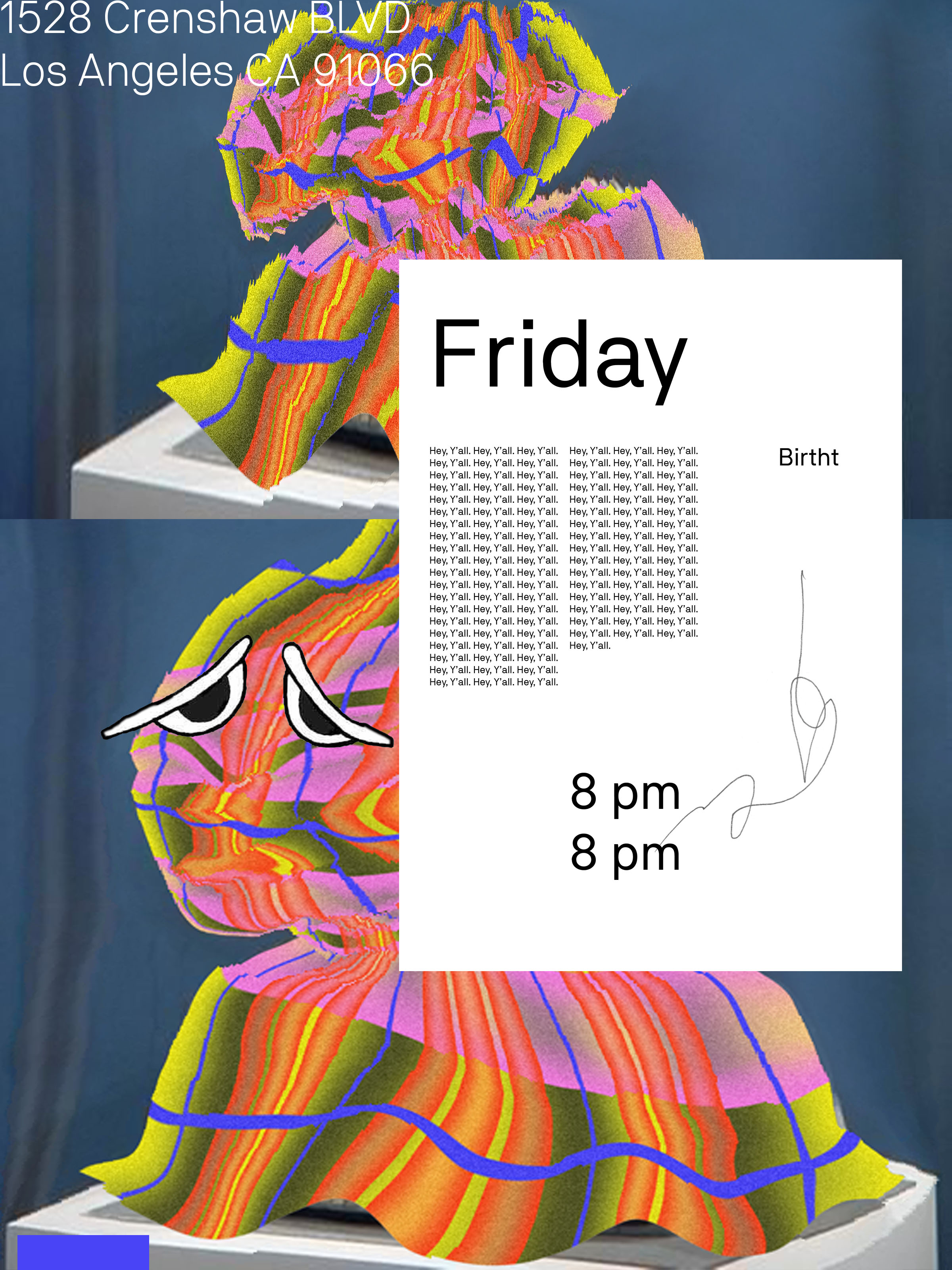 Currently senior designer + partner at Day Job Studios. Employers – Public-Library, Imprint Projects, Westwoodwestwood; Selected Clients – Snap, Nike, Machine Project, The Honest Company, MOCA Step & Repeat, Google Play, Levi’s, Redbull, Calvin Klein, Virgin Hotels, Annapurna Pictures.